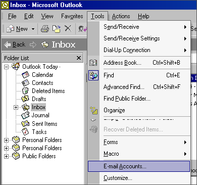 - In Outlook 2007, from the Tools menu, select Account Settings.