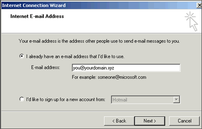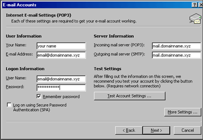- Outgoing Mail server (SMTP): mail.domainname.xyz