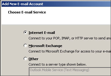 - Select Microsoft Exchange, POP3, IMAP, or HTTP and click Next.