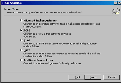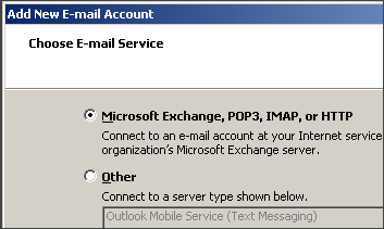 - Select Microsoft Exchange, POP3, IMAP, or HTTP and click Next.